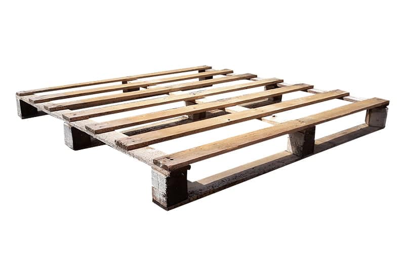 This reconditioned wooden block pallet has a size of 120x120cm, it is a light weight version, with an open lower deck.