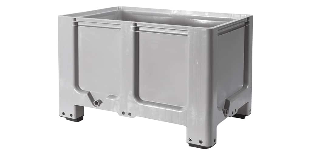 This robust pallet box has an external dimension of 120 x 100 x 80 cm, the internal dimension of the plastic pallet box is 111 x 91 x 61 cm. The pallet box has a weight of 36 KG, the capacity of the pallet box is 670 litres, but it cannot be used to store liquids. The pallet box is also called “big box”.