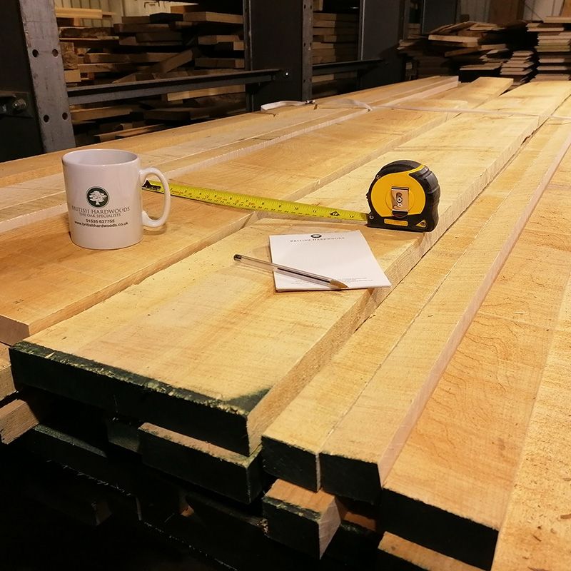 Our Rough Sawn Canadian Maple Timber is supplied by the cubic foot in full sized boards. The boards are supplied in random widths, typically between 90mm and 200mm, but this can vary depending on our timber stocks at the time of placement of order. The board lengths tend to be around 2.4 metres to 3 metres, but again can vary. If you wish to place an order, please contact us to obtain a current guide to stock availability.